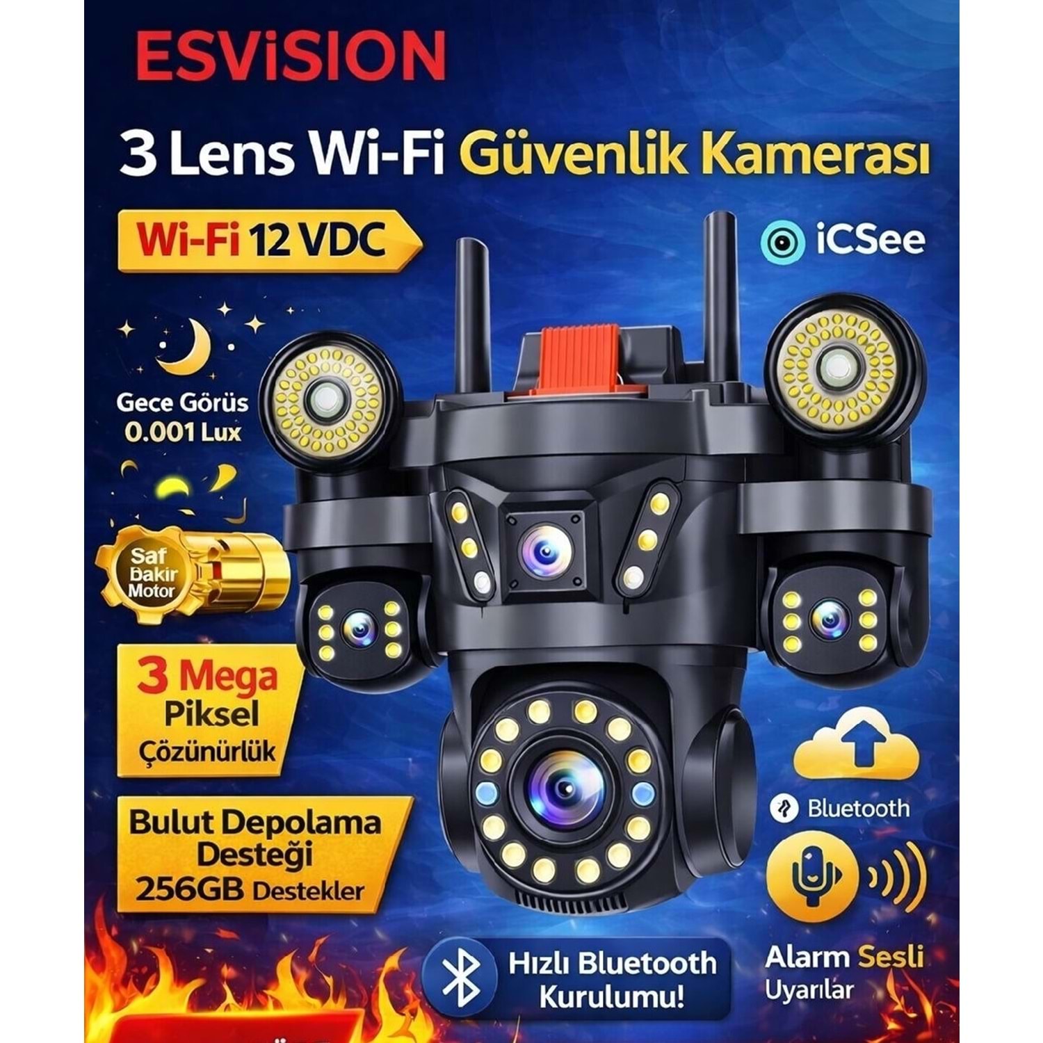 ES-9003 WİFİ CAMERA 3 LENS ESVISION KAMERA (KOLİ12)
